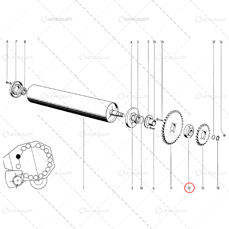 Lagar pinion tambur presa baloti Welger RP12, RP150